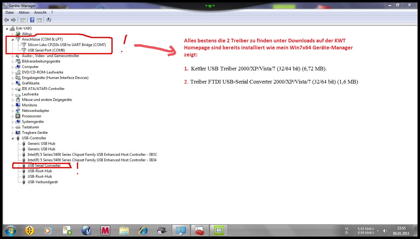 Sind dann noch 2 gelbe Einträge USB und Konverter Treiber hier aus dem Portal runterladen und händisch installieren.